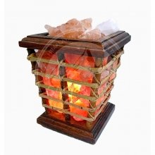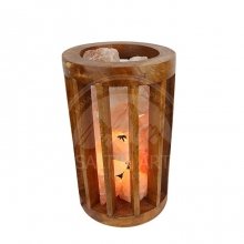 Himalayan Salt Wooden Cylinder Basket Lamp